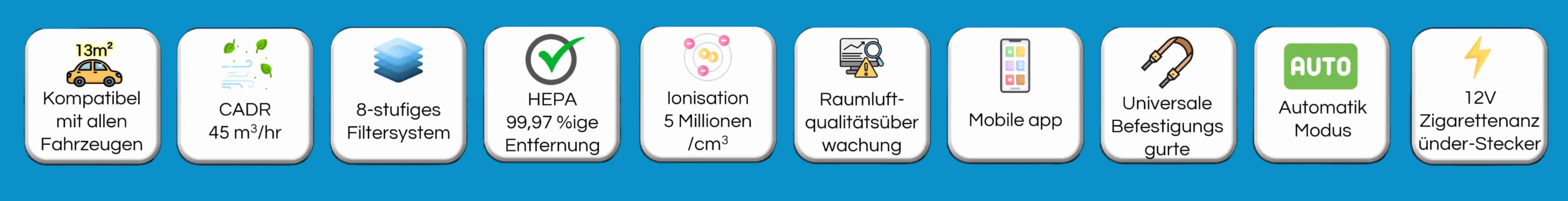 HEPA H13 Filter und Ionisator – Für Fahrzeuge bis 13 m³