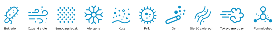 Nasze oczyszczacze powietrza wykorzystują połączenie najlepszych w swojej klasie technologii medycznych do filtrowania i oczyszczania powietrza. Opierają się one na opatentowanym 8-stopniowym procesie filtracji w celu usunięcia wszystkich zanieczyszczeń z powietrza w pomieszczeniach: zarazków (wirusów, bakterii i zarodników pleśni), drobnych cząstek i nanocząstek (PM1.0, PM2.5, PM10), alergenów (pyłków, kurzu, roztoczy, sierści zwierząt), zanieczyszczeń chemicznych (takich jak LZO, formaldehyd, tlenek węgla i wiele innych toksycznych gazów), dymu (w tym dymu tytoniowego i spalin), a także nieprzyjemnych zapachów.